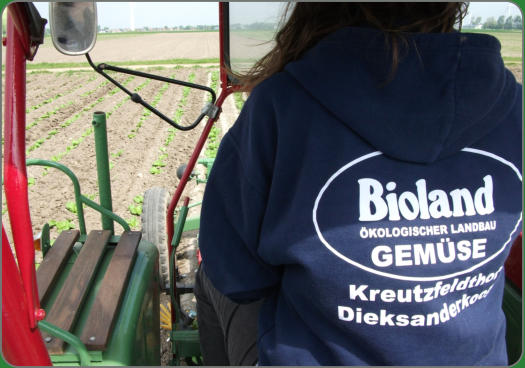 Für uns bedeutet dies, ressourcenschonend zu wirtschaften:1. Rein pflanzliche Düngung durch Fruchtfolgees wird keinerlei Gülle oder Mist auf die Felder verbracht2. Rein mechanische Unkrautregulierungerst maschinell, in den Reihen von Hand und den verbleibenden Rest tolerieren wir3. Reparatur vor Neukaufdie Ausbildung zum Landmaschinenmechanikermeisterermöglicht Thies den Erhalt seiner Traktoren und Maschinen4. Mitmenschlichkeitunsere Erfahrungen - vor allem im familiären Bereich - habenuns in dem Wunsch nach einem respektvollen Miteinander bestärkt. Beim Umgang mit unseren Kunden, Mitarbeitern undallen, die mit uns verbunden sind, sind wir seit den nunmehr 19 Jahren, in denen wir den Hof bewirtschaften, auf Augenhöhe bedacht.